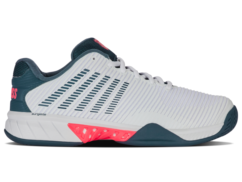 K-Swiss best-selling shoe, the Hypercourt Express 2, is light, comfortable, breathable, and has a generous fit, making it the ideal choice for a variety of playing styles and levels. Durawrap Flex, gives the shoe support with no break-in period, while Surgelite midsole technology provides all day comfort.