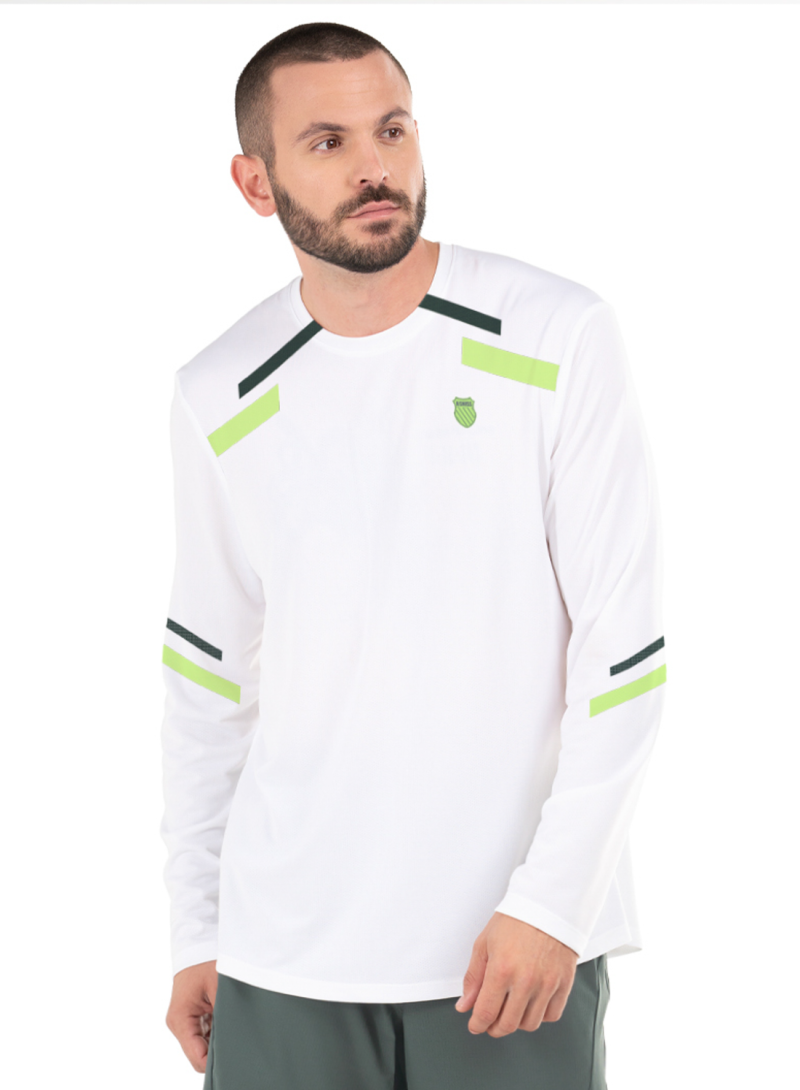 Camisetas y tops K-Swiss para hombre | Camiseta de manga larga con rayas dinámicas blanca