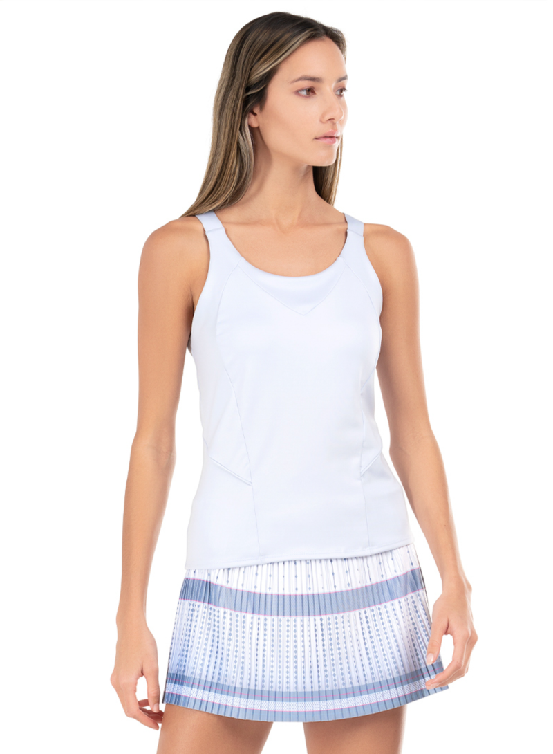 Pripremite se za prelet terena u ovom Glace plavom kompresijskom topu dizajniranom za potporu i udobnost. Izrađen od visokoučinkovite tkanine, ima ergonomske dizajne, uvučene elastične naramenice, ugrađeni grudnjak i odvod vlage kako biste se osjećali (i izgledali) što je moguće kul na terenu.