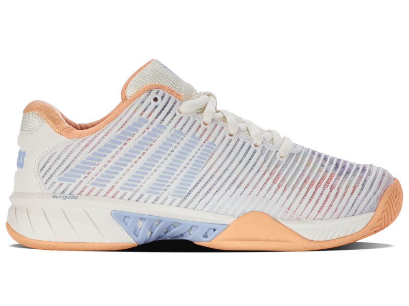 Najprodavanija tenisica K-Swiss, Hypercourt Express 2, lagana je, udobna i prozračna tenisica s širokim pristajanjem, što je čini idealnom tenisicom za razne stilove i razine igre. Durawrap Flex pruža potporu tenisici bez razdoblja razgazivanja, dok tehnologija međupotplata Surgelite pruža cjelodnevnu udobnost.