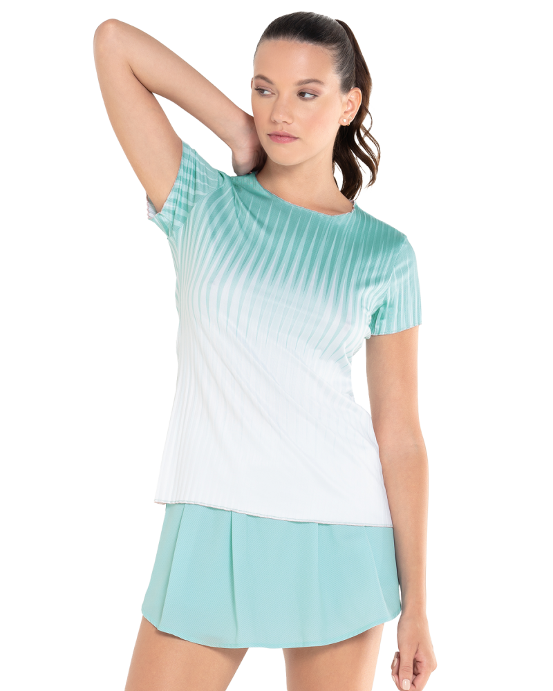 Táimid ag brú teorainneacha an chriú leadóige clasaiceach leis an bhfabraic éadrom seo agus leis an bpléatáil nach gcuireann aon srian ar do chluiche. Cruthaíonn blocáil dathanna ombre agus línte dearaidh cuma imeallach don chúirt agus tú ag eitilt trasna uirthi go héasca. Tá rátáil UPF 50+ ag an bhfabraic freisin, rud a thugann cosaint ón ngrian duit ar an gcúirt agus lasmuigh di.