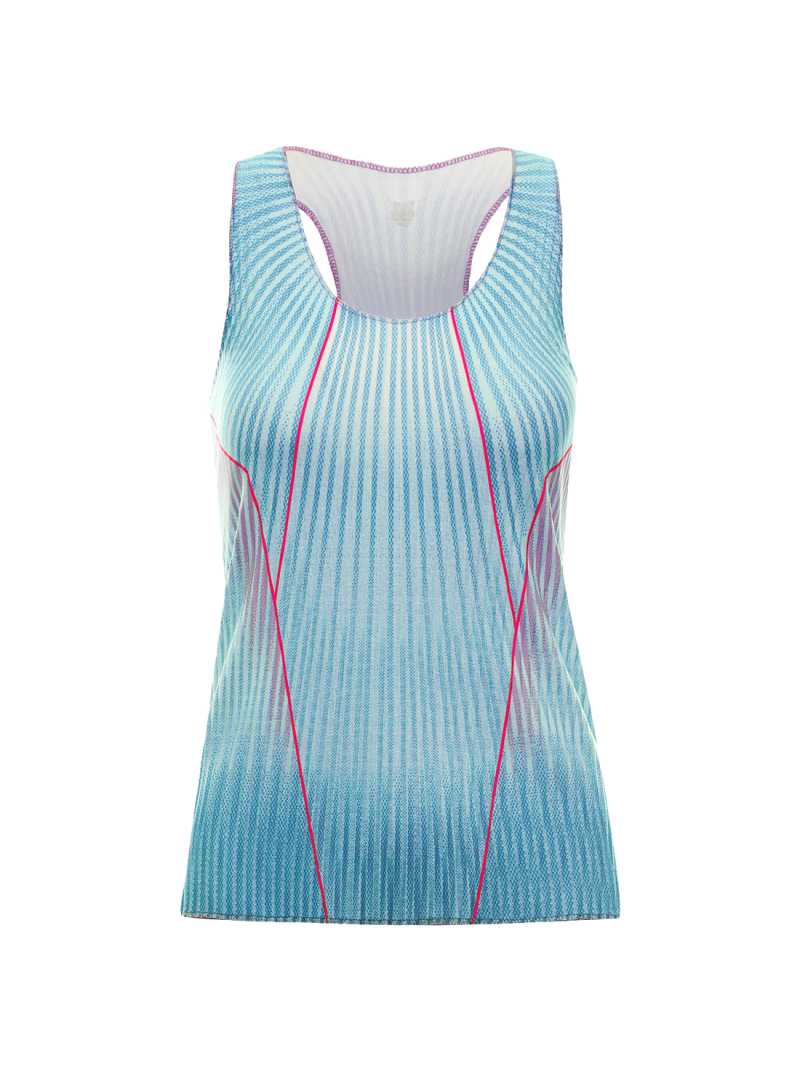 Innovation och funktionalitet hjälper till att omdefiniera det klassiska tennislinnet. Plissering och ultralätt tyg ger rörelsefrihet och ultimat luftcirkulation. Kroppsmapping ger en otroligt smickrande passform när strålar av ängel- och ametistfärgade strukturlinjer ger Kaliforniens magiska timme till planen. Men solen går aldrig ner över ditt spel tack vare UPF 50+-klassat tyg som ger dig solskydd vart du än går.